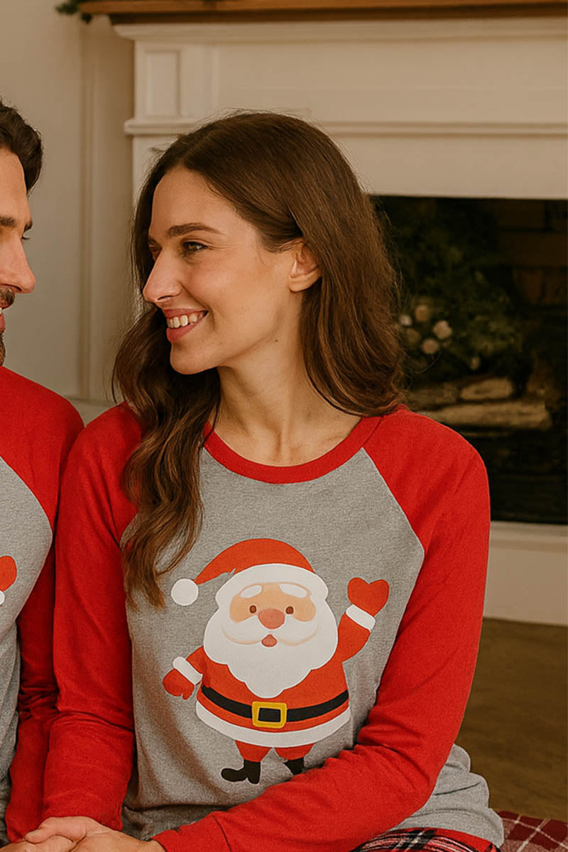 Pigiama donna in caldo cotone con maniche raglan, stampa e pantalone scozzese