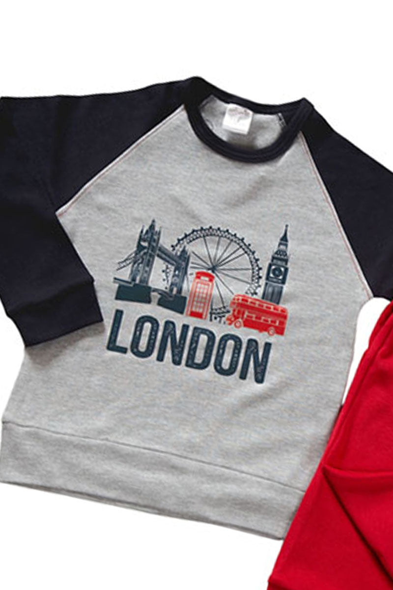 Pigiama in caldo cotone con stampa, maniche raglan e pantalone in contrasto