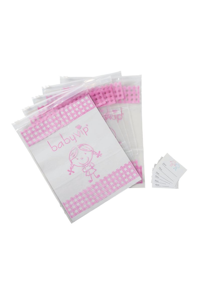 • confezione da 5 sacchetti trasparenti per maschietto e femminuccia;