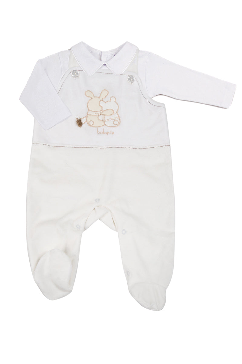 Salopette in ciniglia con ricamo + body in caldo cotone