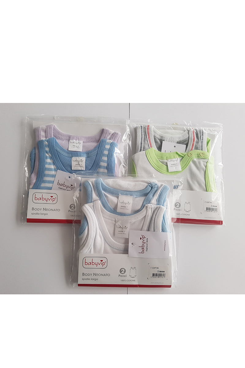 Set 6 Body neonato/a Babyvip spalla larga 100% cotone colori assortiti