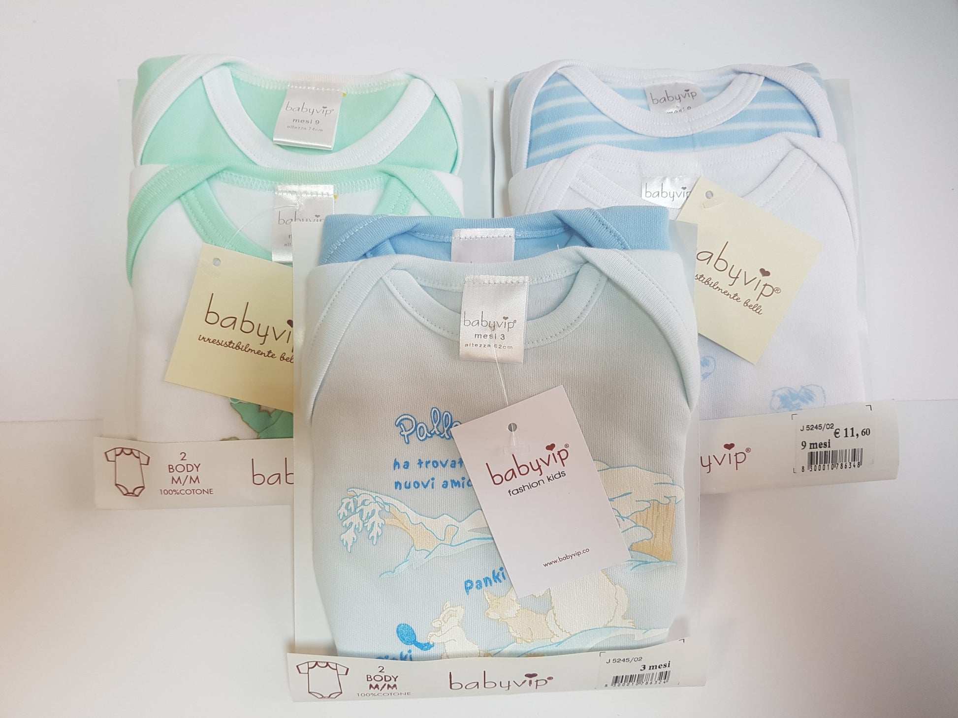 • Il body neonato BabyVip è realizzato con filati di cotone e altri materiali di elevata qualità;