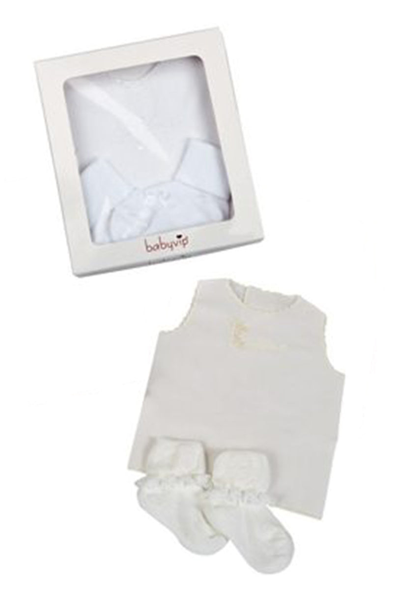 Set camicina fortuna in cotone batista con ricamo "fortuna" e calzini in 100% cotone