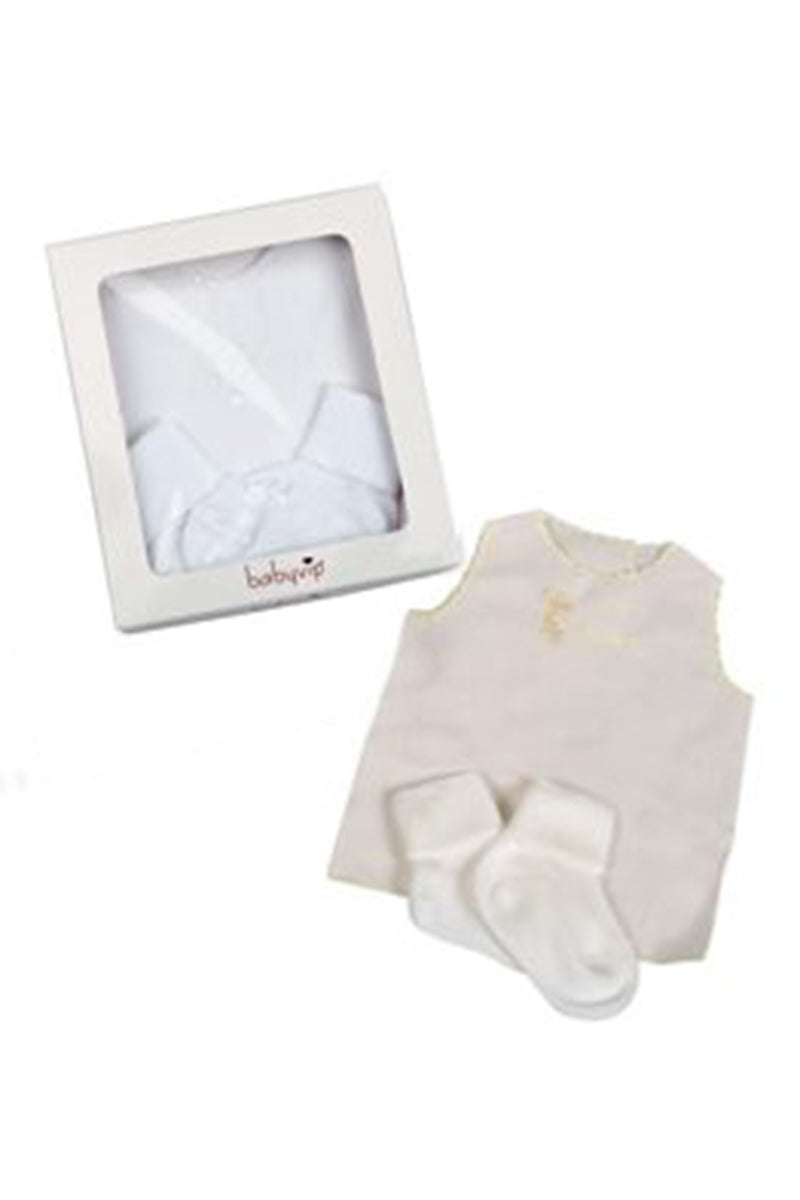 Set camicina fortuna in cotone batista con ricamo "fortuna" e calzini in 100% cotone