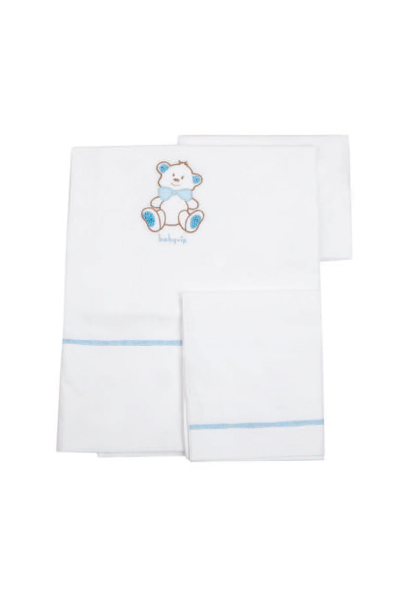 Set lenzuola 3 pezzi per carrozzina e culletta con ricamo orsetto