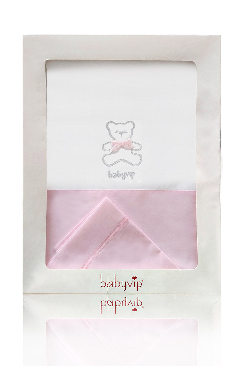 Set lenzuola 3 pezzi per carrozzina e culletta con orsetto e strass