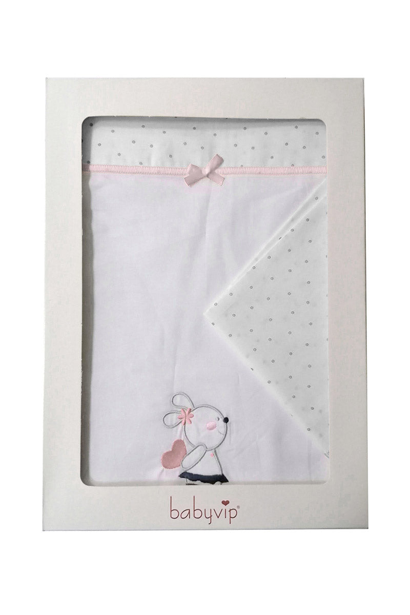 Set lenzuola 3 pezzi per carrozzina e culletta con ricamo coniglietto