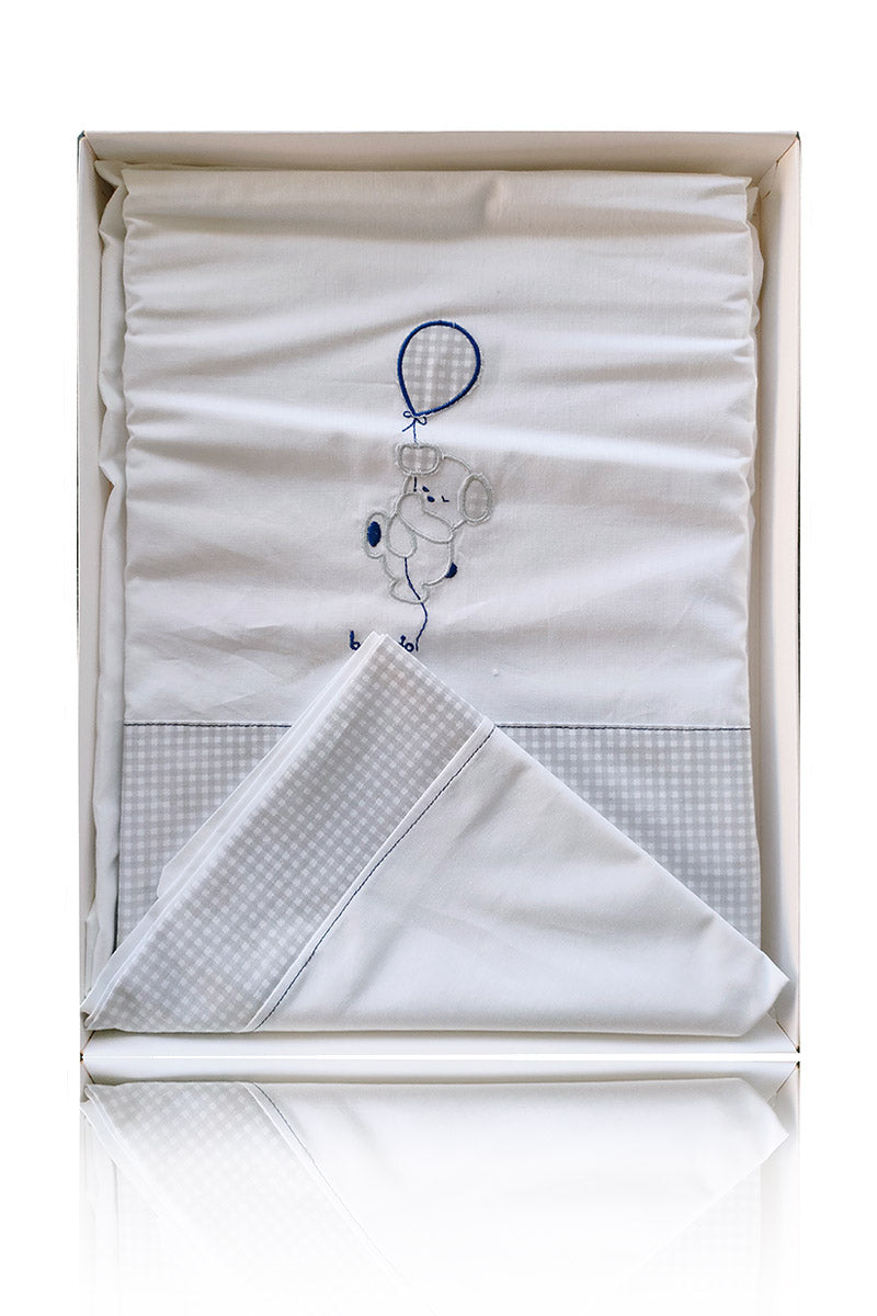Set lenzuola 3 pezzi per carrozzina e culletta con ricamo orsetto
