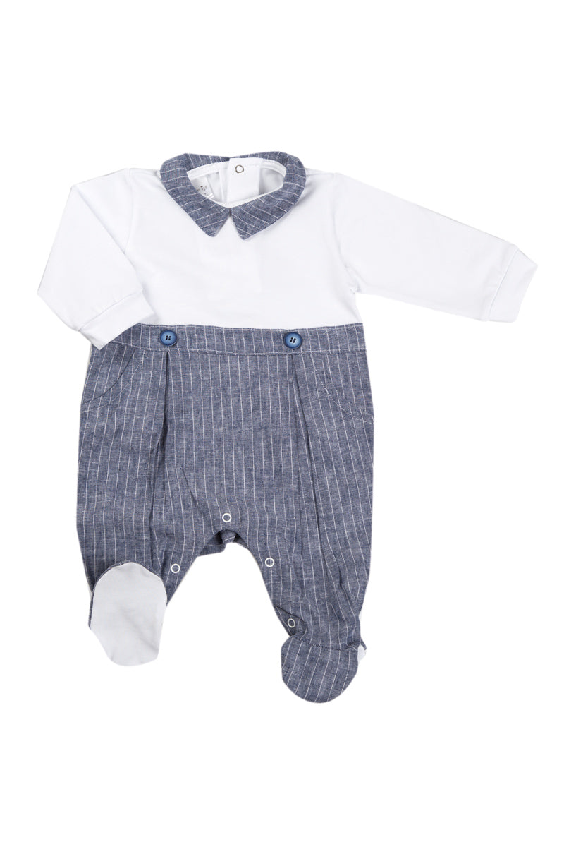 Tutina con inserti in tela effetto lino rigato e pieghe.