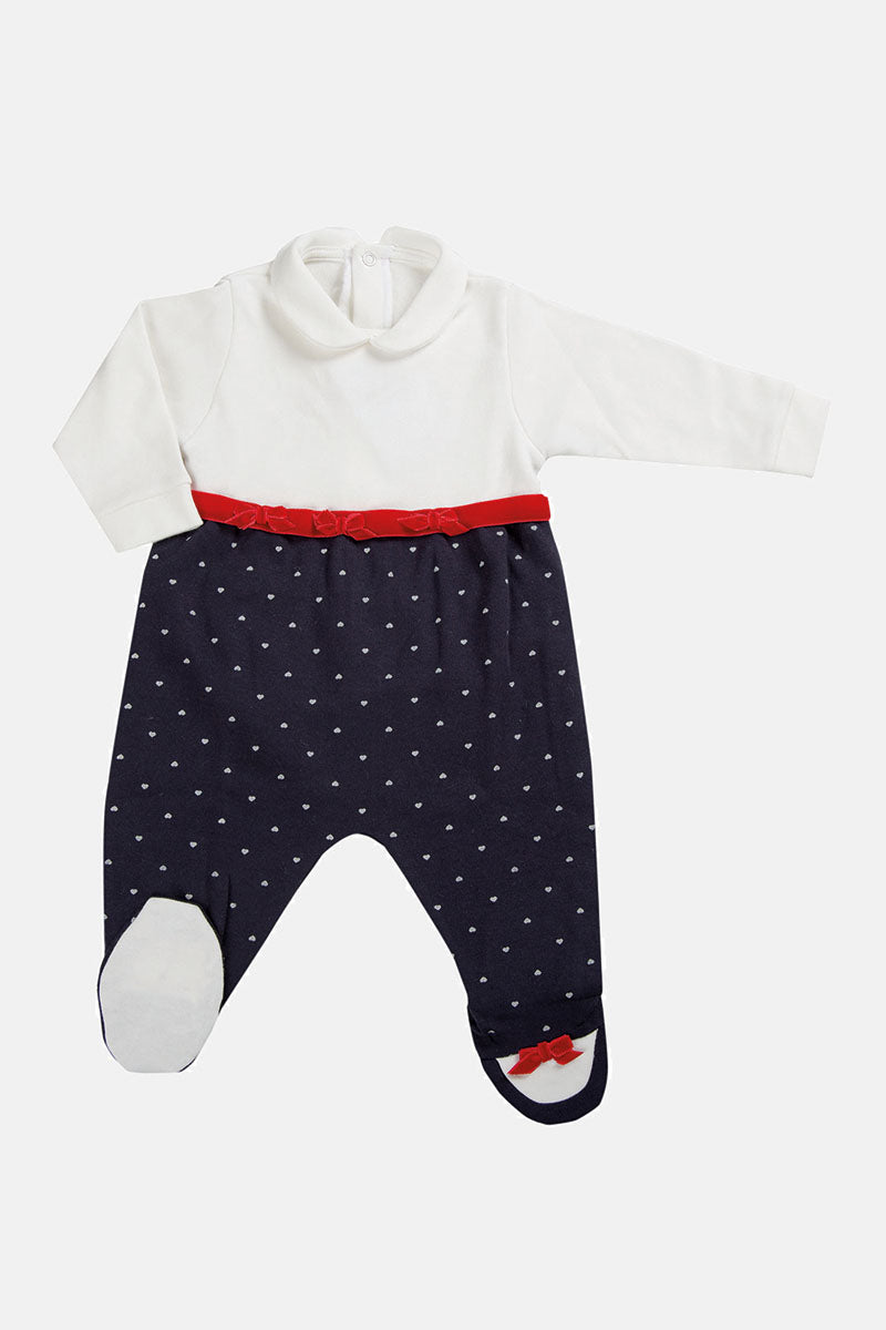 Tutina in caldo cotone fantasia cuori con applicazioni in velluto