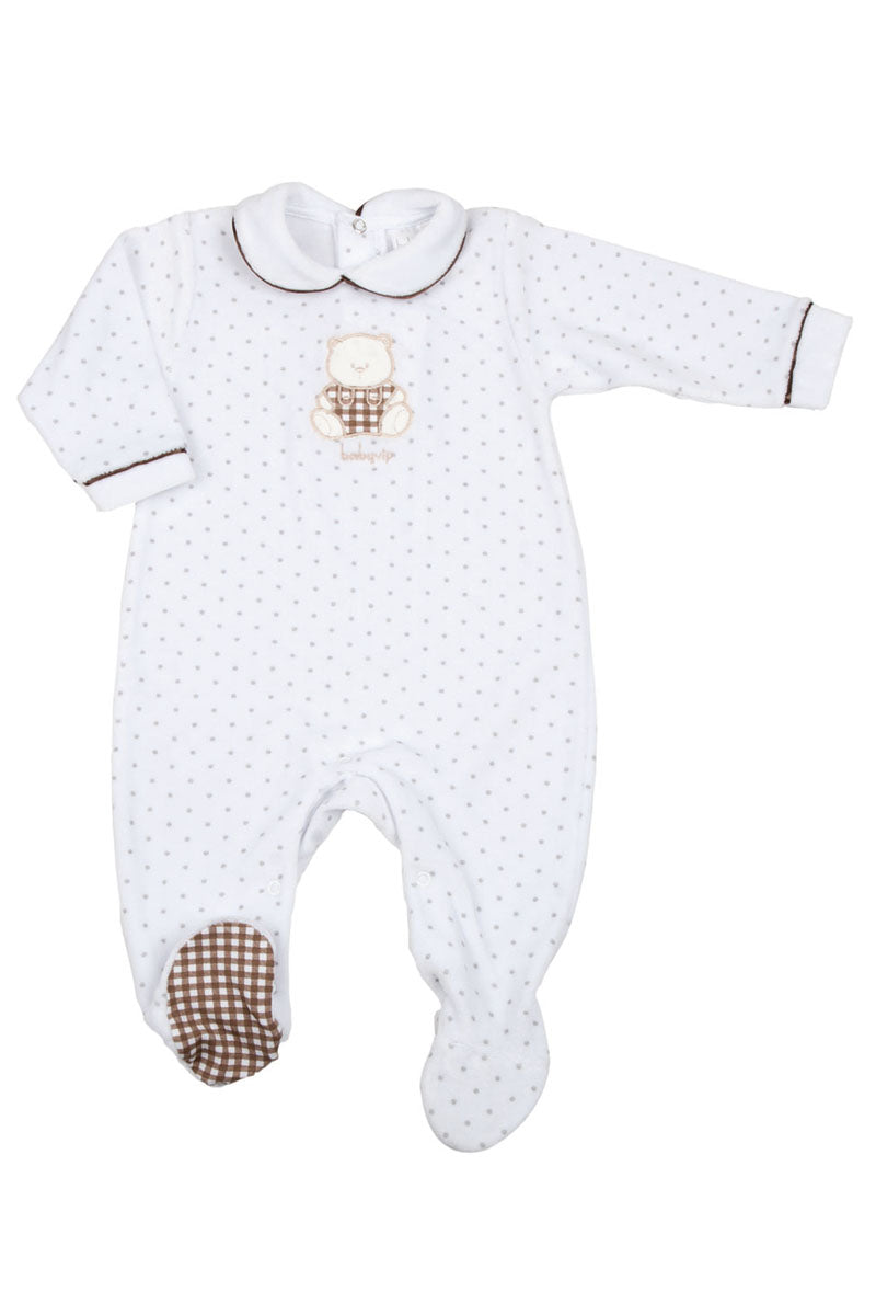 Tutina in ciniglia a pois con ricamo e inserti vichy in contrasto