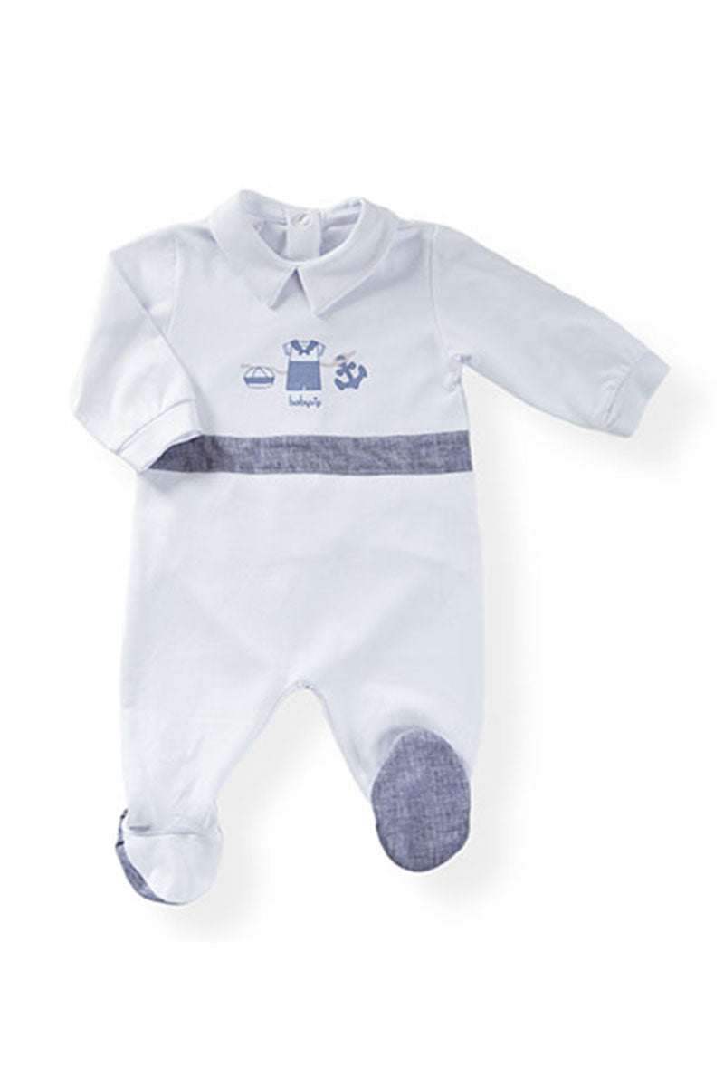 Tutina in in cotone elasticizzato con stampa ed inserti in tessuto effetto lino