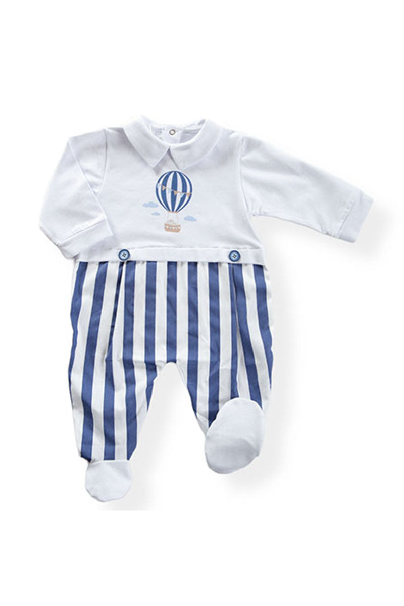 Tutina in in cotone elasticizzato con stampa ed inserto in tela di cotone rigata