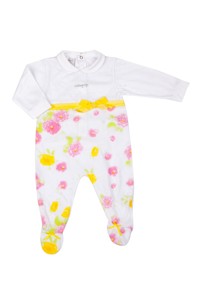 • Impreziosita da una stampa colorata e floreale coordinata con l'applicazione di un fiocco e fascia gialla e scritta BabyVip in strass.