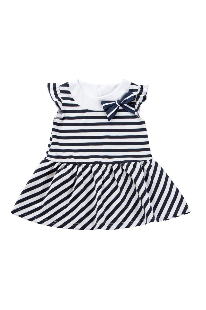 Vestitino con balza sul fondo, alette arricciate e fiocco rigato