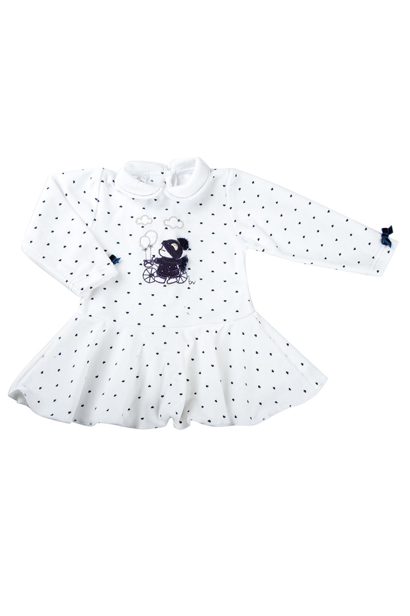 Vestitino in ciniglia con stampa cuoricini, ricamo e nodini in velluto