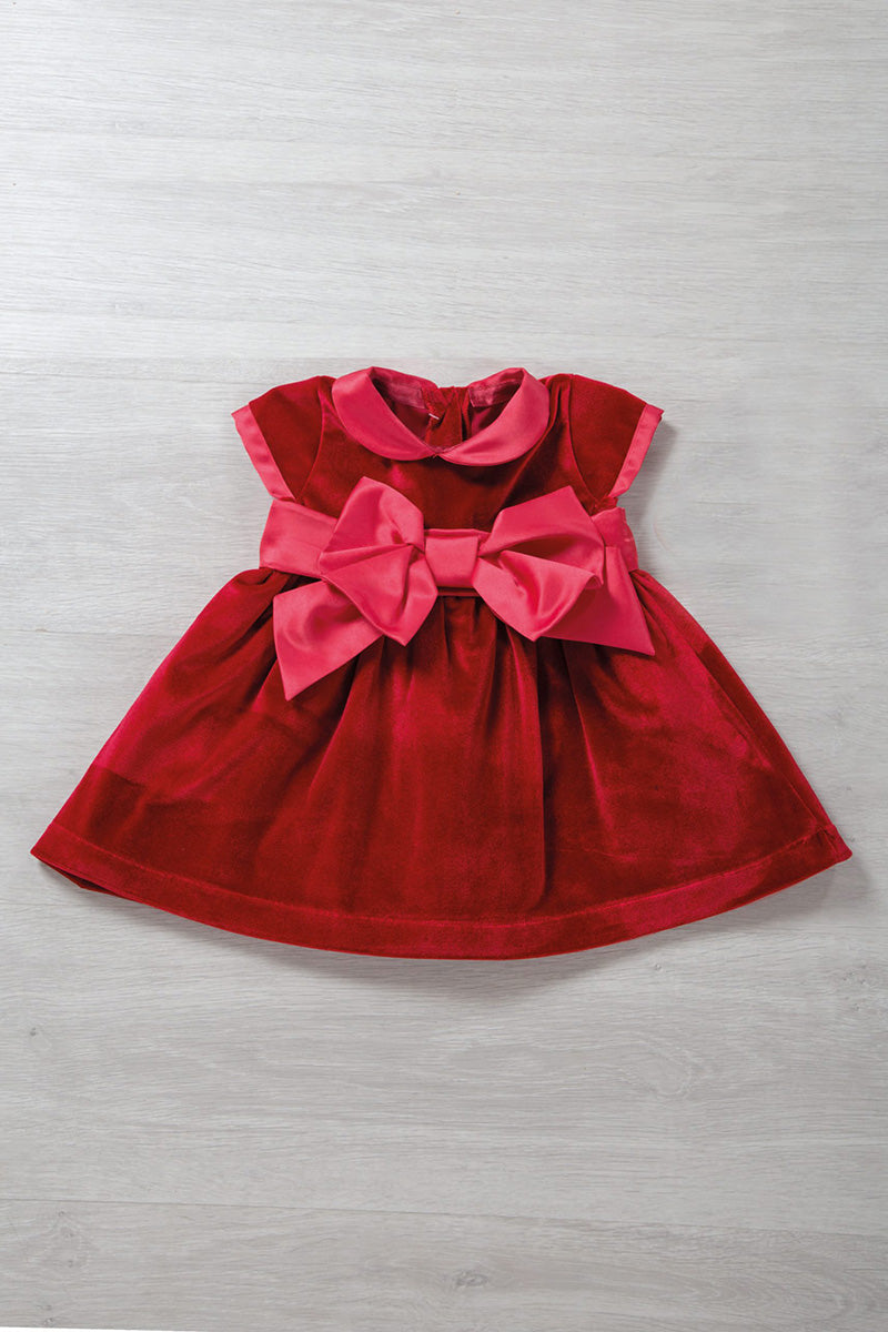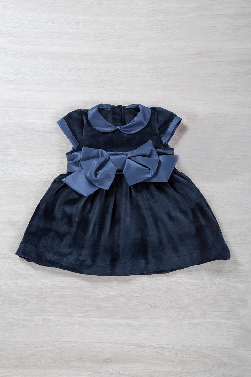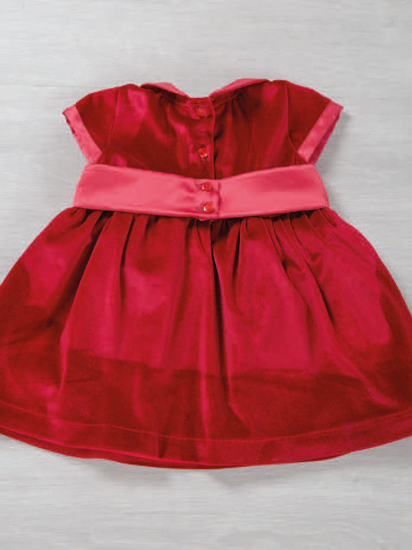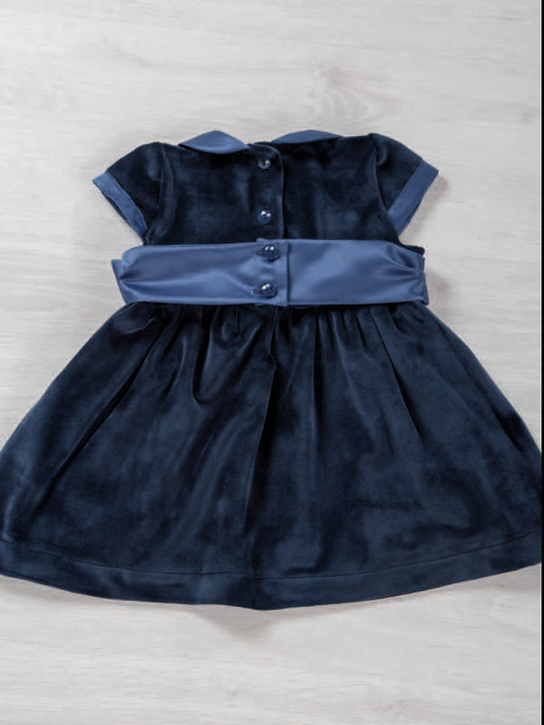 Vestitino in velluto con colletto e bordi maniche in raso