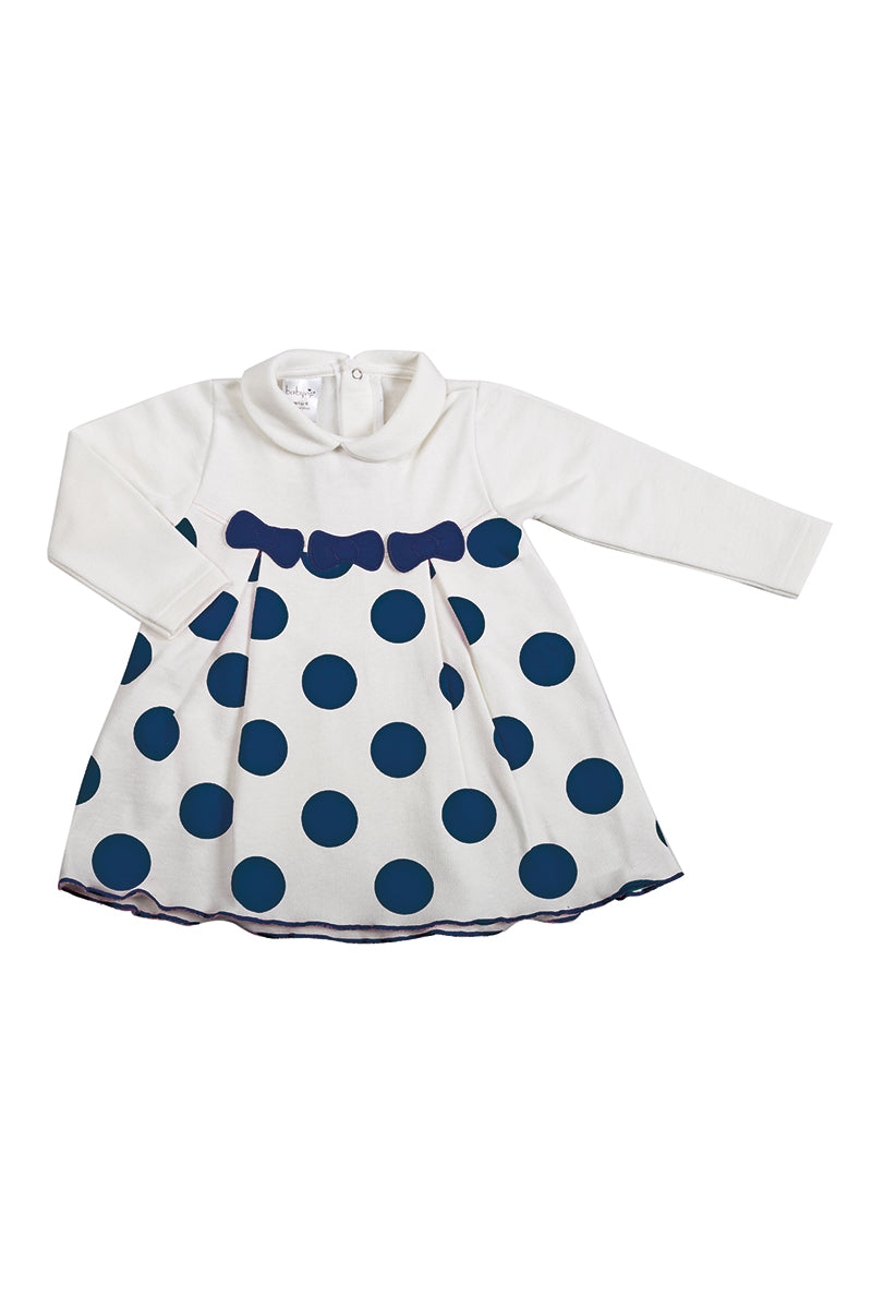 Vestitino manica lunga in felpa garzata a pois con fiocchi applicati