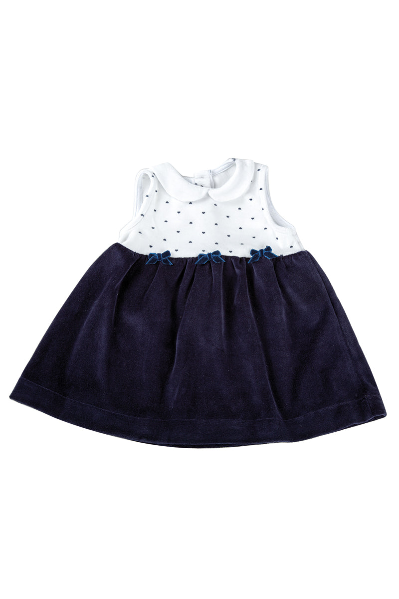 Vestitino smanicato in ciniglia con stampa cuoricini e nodini in velluto