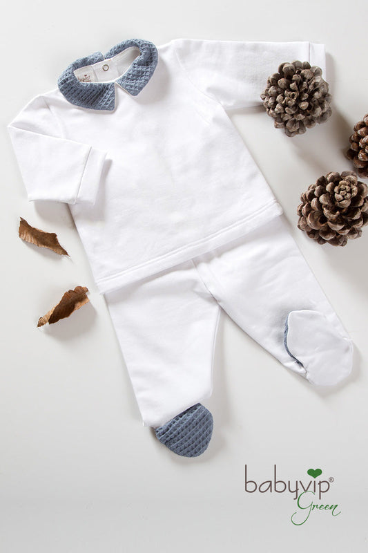 Completo 2 pezzi in felpa garzata organica con inserti in cotone organico a nido d’ape